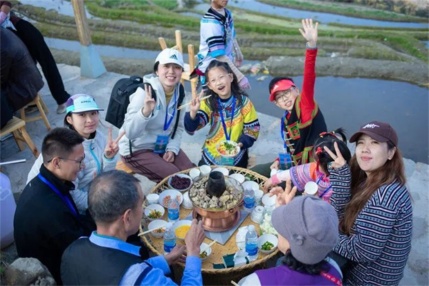 ,红河哈尼梯田正从静态景观蜕变为活态体验地——春天插秧、秋日捉鱼,火塘边煮咖啡、村寨里尝美食,蓝染、舂糍